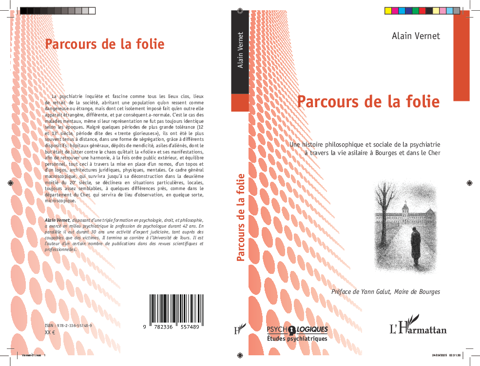 Publication en ce mois de novembre 2025 de l’ouvrage d’Alain VERNET : PARCOURS DE LA FOLIE Une histoire philosophique et sociale de la psychiatrie à travers la vie asilaire à Bourges et dans le Cher, Paris, L’harmattan.